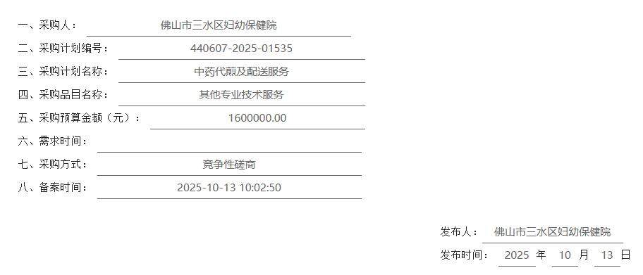 【佛山市三水區(qū)婦幼保健院】廣東省佛山市三水區(qū)婦幼保健院中藥代煎及配送服務(wù)