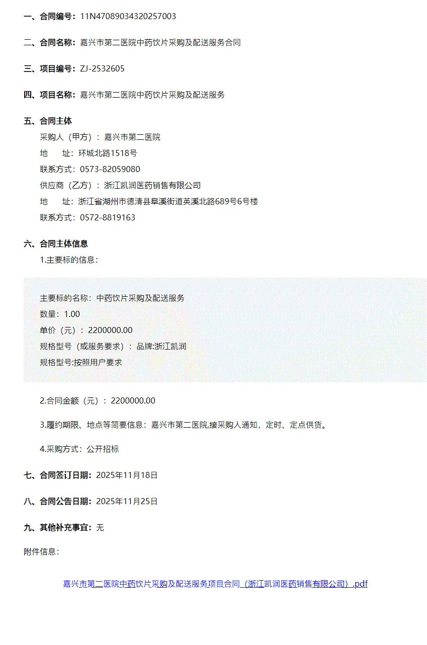 【嘉興市第二醫(yī)院】浙江省嘉興市第二醫(yī)院中藥飲片采購及配送服務合同公告1