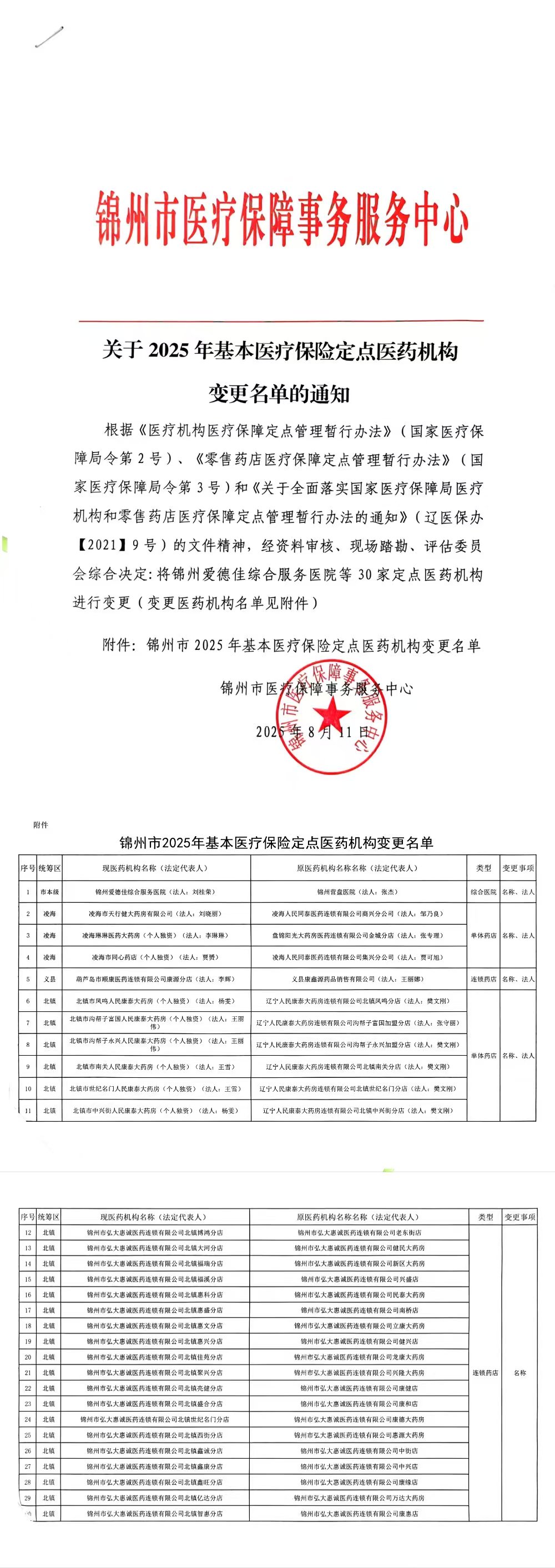【錦州】關(guān)于2025年基本醫(yī)療保險(xiǎn)定點(diǎn)醫(yī)藥機(jī)構(gòu)變更名單的通知