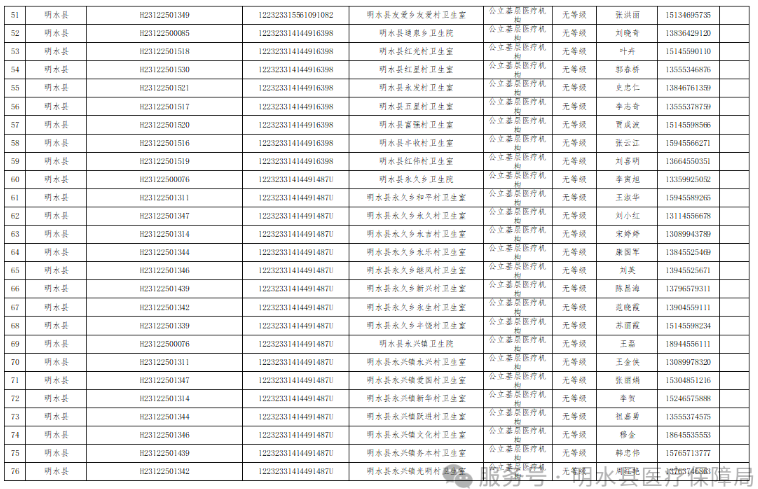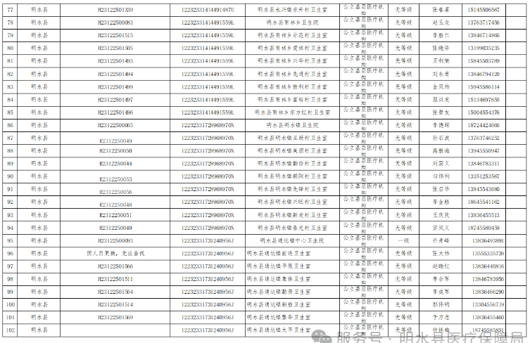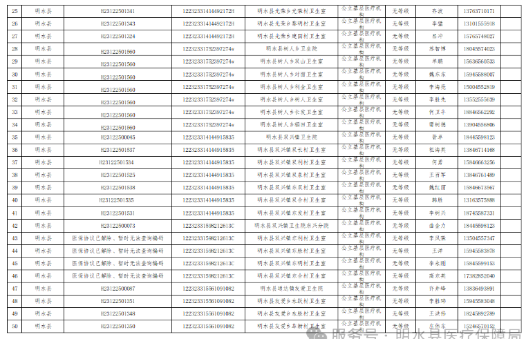 ??? 根據(jù)《綏化市集中帶量采購藥品進基層醫(yī)療機構(gòu)、進民營醫(yī)療機構(gòu)、進零售藥店工作實施方案》(綏醫(yī)保發(fā)【2025】27號)工作要求,我縣14家公立基層衛(wèi)生院,95個行政村的村級衛(wèi)生室,2個社區(qū)衛(wèi)生服務(wù)中心,1家醫(yī)保定點藥店,1家醫(yī)保定點私立醫(yī)療機構(gòu),積極參加了集采藥品“三進”工作,目前集采藥品“三進”名單已經(jīng)通過綏化市醫(yī)療保障局審核。按照上級醫(yī)療保障部門對集采藥品“三進”工作有關(guān)規(guī)定,現(xiàn)將《明水縣參加集采藥品“三進”醫(yī)藥機構(gòu)名單》(詳見附件)進行公示,公示期限為2025年8月7日至8月13日。 ???? 如有異議,請在公示期內(nèi)向明水縣醫(yī)療保障局反映。 ???? 受理電話:15604553789 ???? 受理人:王曉明 ???? 地址:明水縣人民辦事中心528室